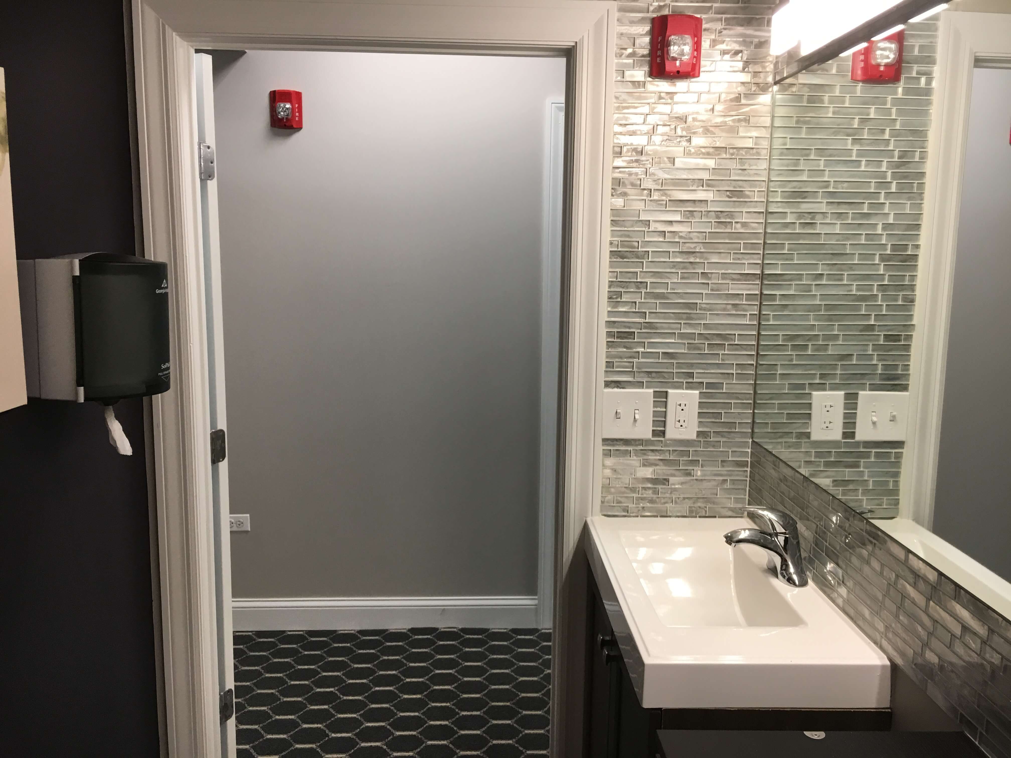 - Semi-furnished suites include shampoo station/sink and vanity, large mirror, classy cabinets, glass shelving, a mini-refrigerator, and more!